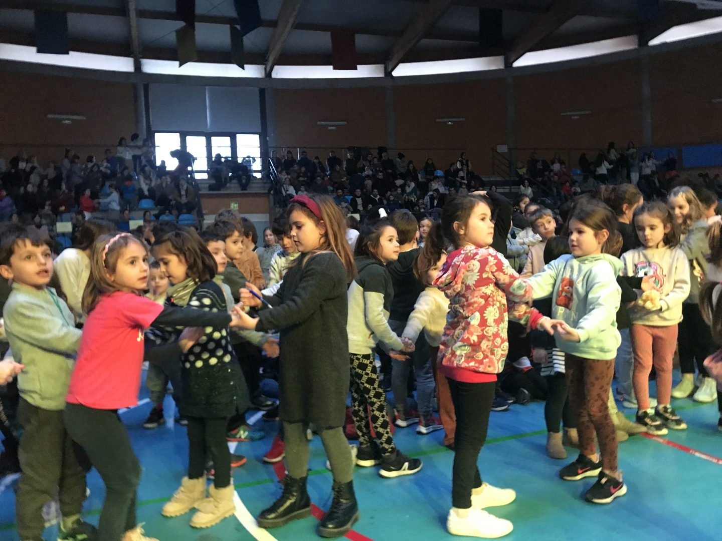 Organizada por Orioko Herri Ikastola, Kantu Kole ha sembrado de colores y sonrisas los rincones del polideportivo.