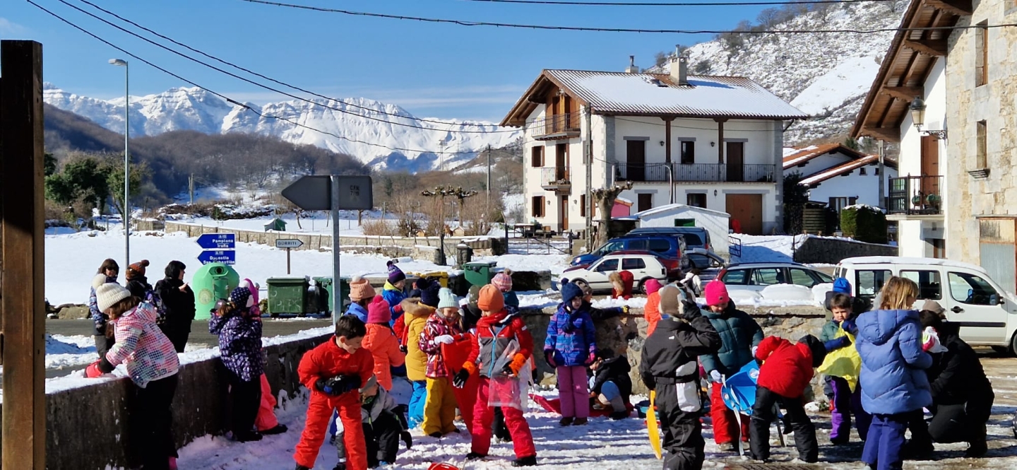 Aste honetan ezohiko irudiak utzi ditu elurrak herrian eta noski, elurra ikastola atariraino etorri zela ikusita, LHko ikasleak geletatik atera eta jolasean ibili ziren. Denbora gutxian iraun zuen ordea eta elurraz gozatzen jarraitzeko, Gorritira joan zen asteazkenean LHko etapa guztia.