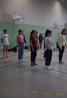 Harrera paregabea egin zieten bertako ikasleek gureei: bertso, rap, dantza...ugarirekin. "Azterketak euskaraz" ekimenaren berri ere eman zieten eta jolas ugari antolatu zituzten. Egunaren amaieran, Herri Urratserako sortu zituzten bixerak ezagutarazteko Tik-Tokak grabatzen bukatu zuten.