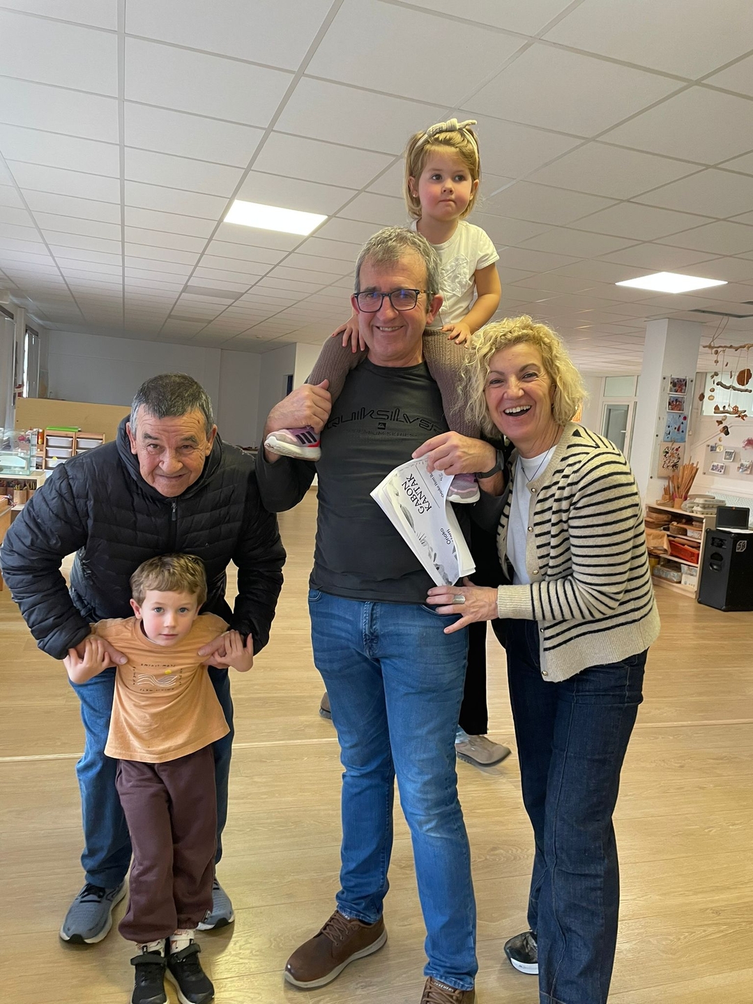 Asko dira egunero egunero etortzen direnak, haurrak ekartzera, jasotzera...zenbat goxatzen dituzten haurrak aiton amonek...atzokoan ordea, ikastolatik gonbidpaena jaso eta bilobekin abestera gonbidatu genituen, elkarrekin une goxo bat igarotzeko.