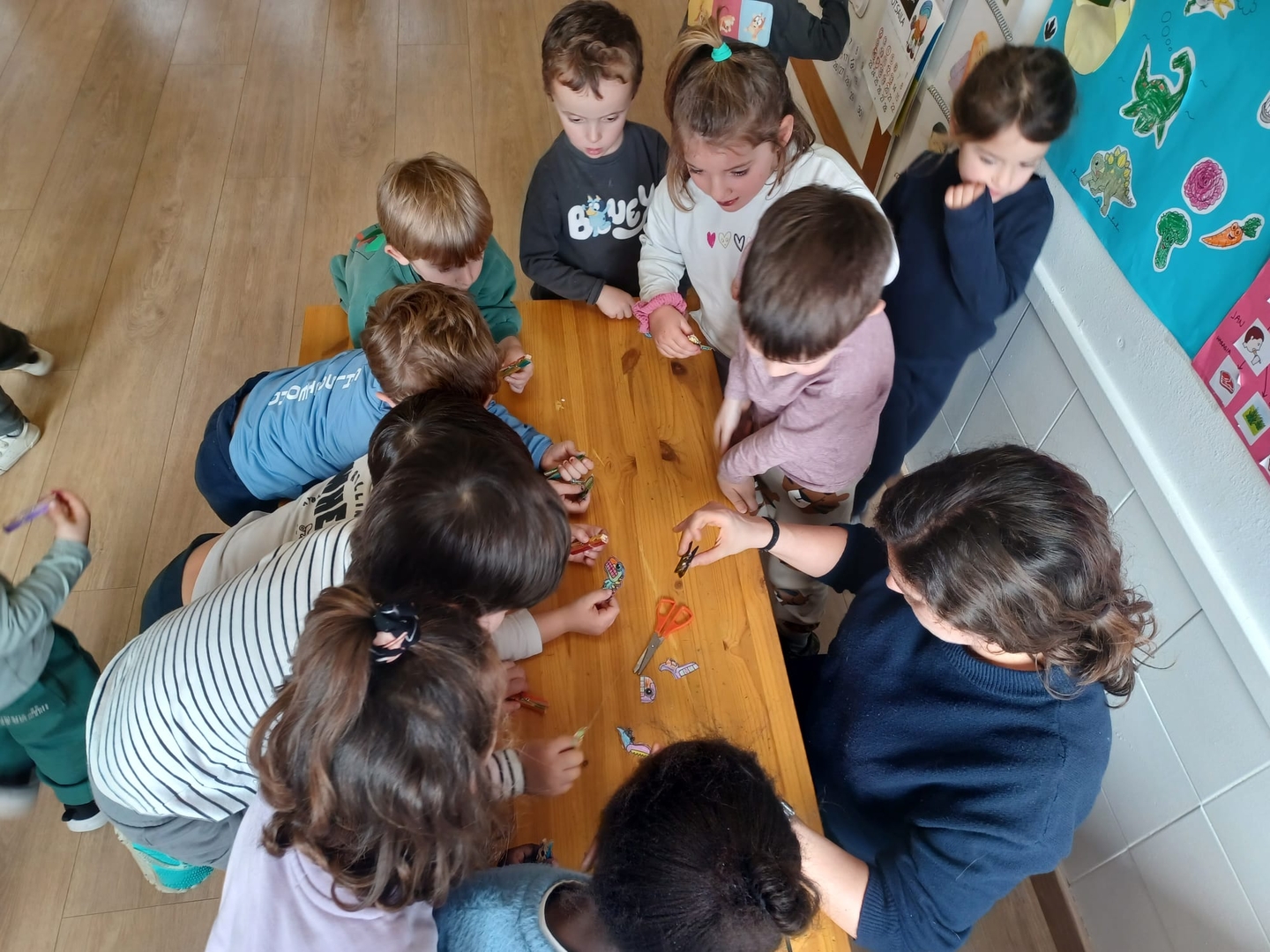 Bestalde, urtaro aldaketa guztietan bezala, amona Cristina, Indarren amona etorri zen. Haurrek arretaz behatzen dituzte erabiltzen dituen teknikak, urtaro bakoitzean erabiltzen dituen koloreak...